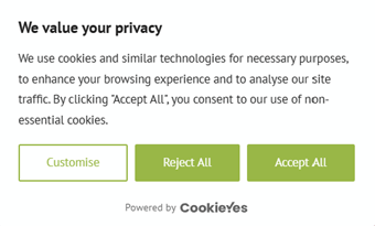 The first time you visit this website via a particular device (e.g. your laptop or mobile) you’ll see a clear on-screen notification about cookies and have the choice if you wish to Customise them, Reject All or Accept All.