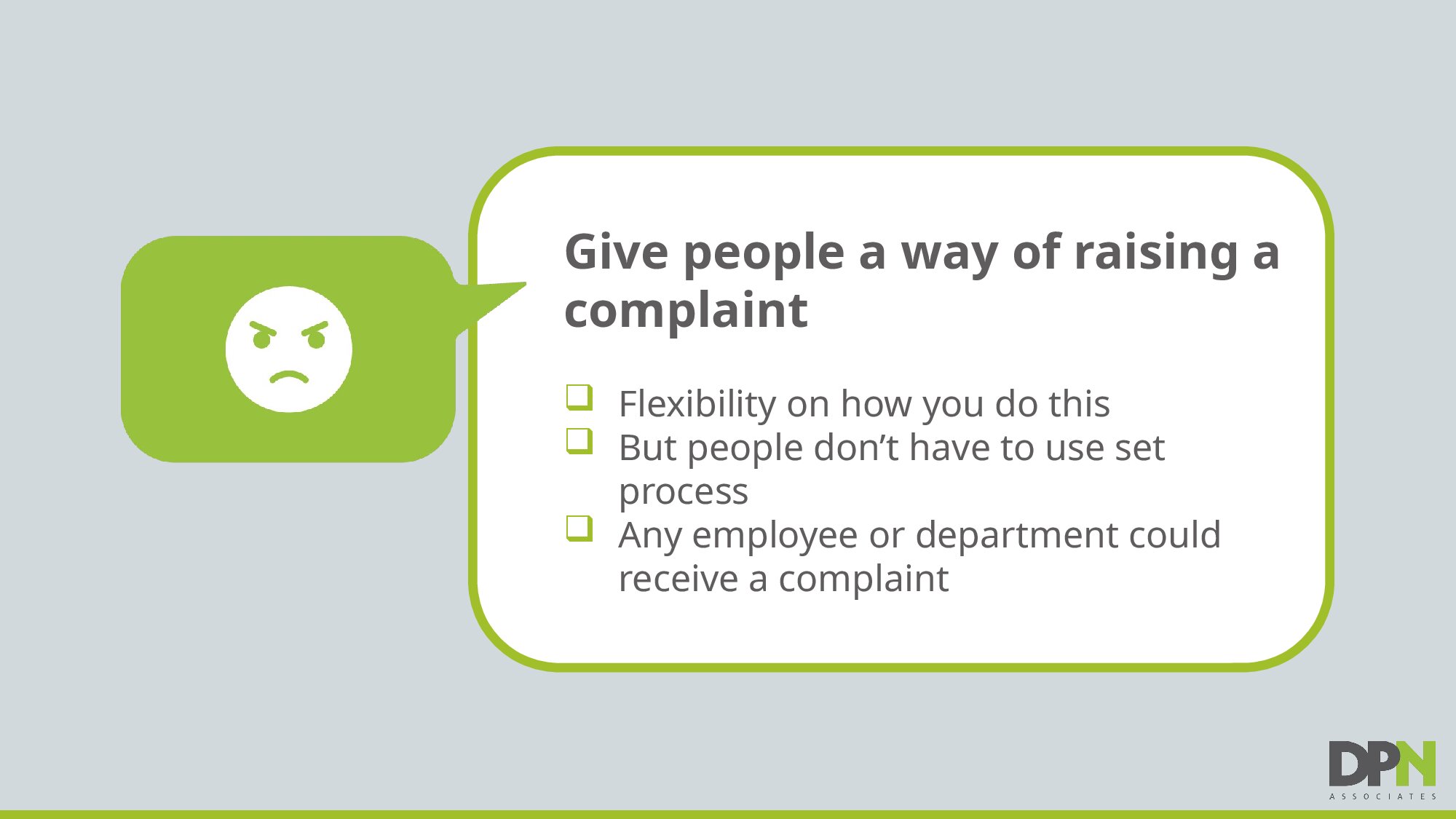 Employees need to know about this change in the law, be able to recognise a complaint and know what to do if they receive or spot a complaint.