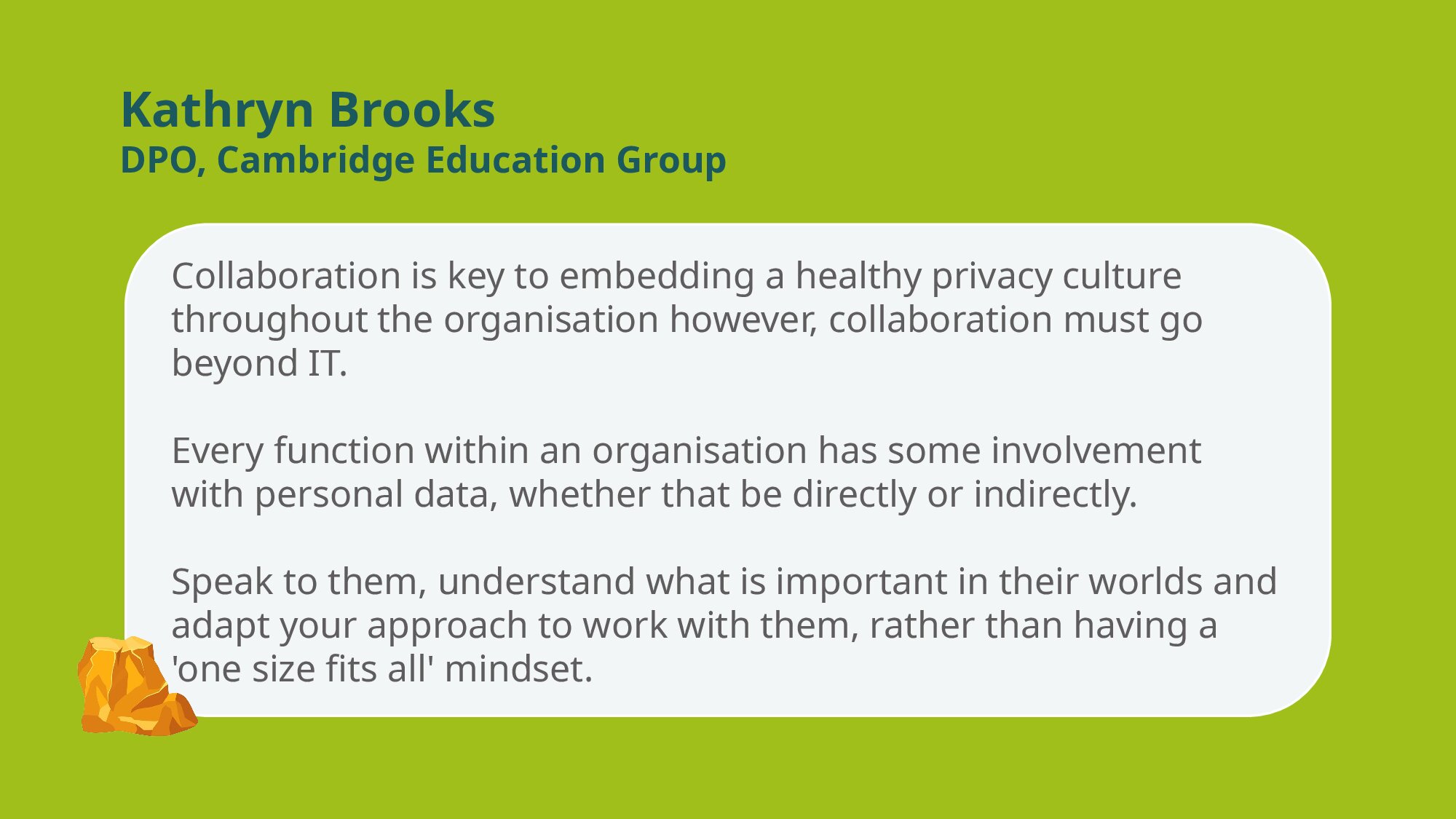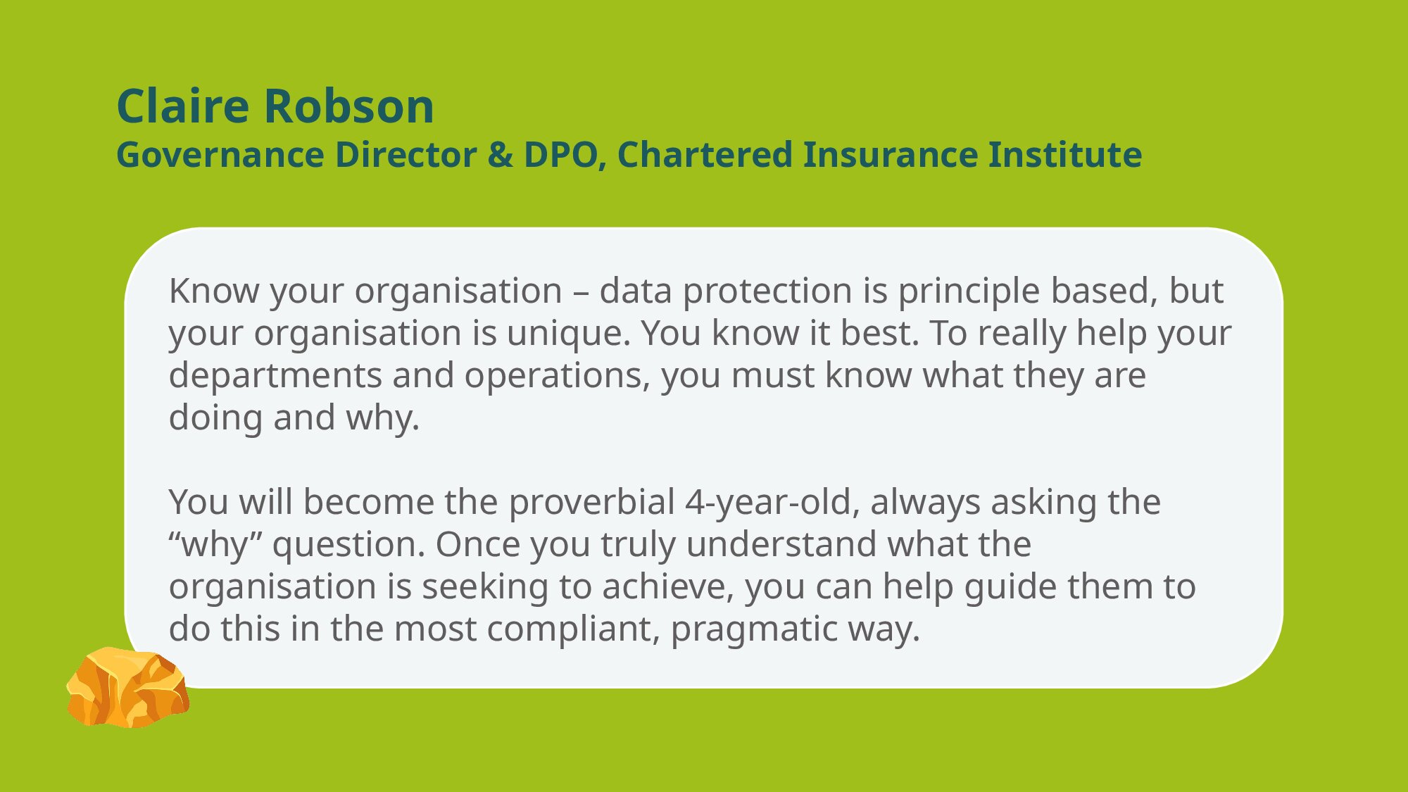 I can’t stress enough to effectively tackle data retention it needs shared ownership – clear accountability with assigned roles and responsibilities across the organisation. Good data governance is the key.