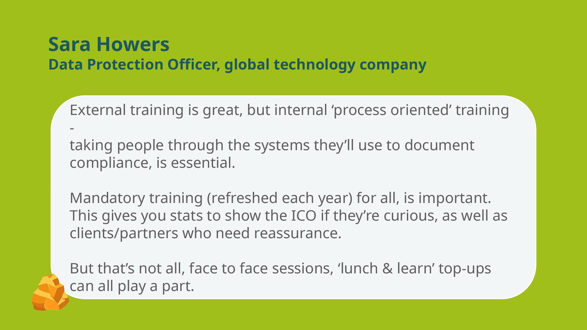 You may be asked to provide this evidence to the ICO, or other industry bodies.
